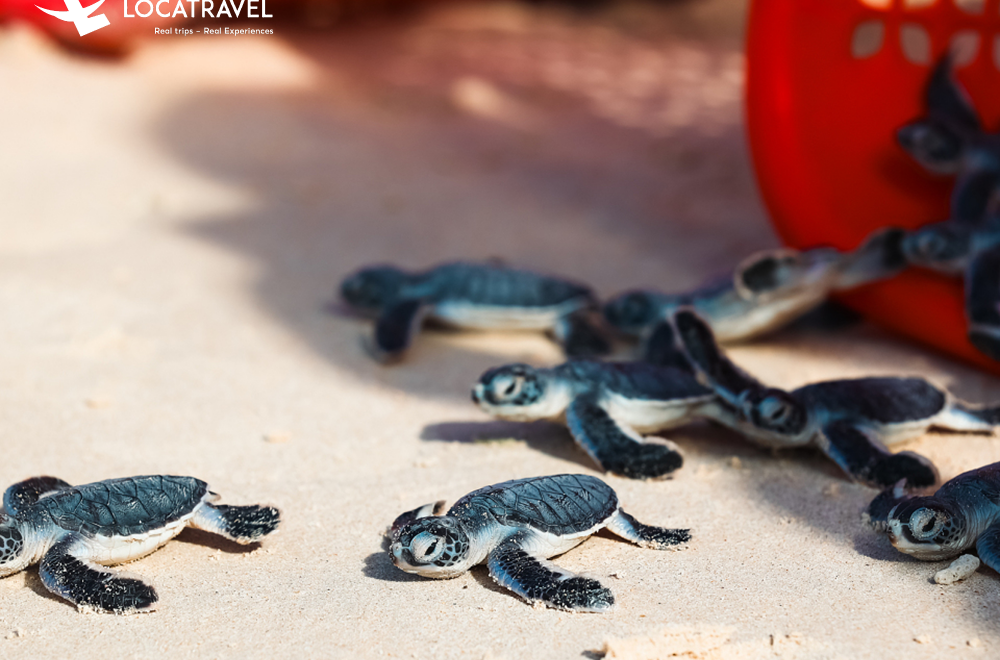 Tham gia Tour Xem vích để trứng kết hợp lặn, du khách được trải nghiệm một đêm đáng nhớ nhưng đầy thú vị. Tour diễn ra vào buổi đêm trên hòn Bảy Cạnh, được tận mắt chứng kiến con Vích (Rùa biển Chelonia Mydas) làm ổ và để trứng trên bờ biển.